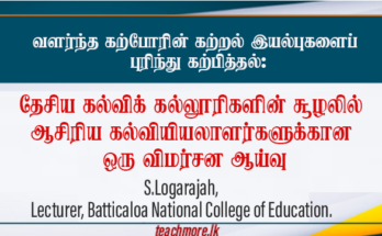ஆசிரியர் தொழில்சார் அபிவிருத்தியை வலுப்படுத்தும் வேலைத்திட்டம் – 2026 இலங்கை கல்வி அமைச்சின் 2026 ஆம் ஆண்டுக்கான வருடாந்த திட்டத்தின் கீழ், ஆசிரியர்களை வான்மையாளர்களாகவும் (Professionals) நவீன கல்விச் சீர்திருத்தங்களுக்கு ஏற்றவாறு தயார்படுத்தவும் விசேட பயிற்சித் திட்டங்கள் கட்டாயமாக்கப்பட்டுள்ளன. இது தொடர்பாக …