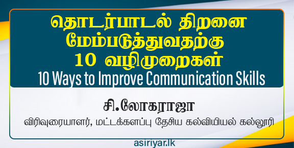 தொடர்பாடல் திறன் என்பது மேடையில் பேசுவது மட்டுடல்ல, ஏதாவது கூட்டம் அல்லது ஒன்றுகூடலில் பேசுவதாயினும் சரி, தொழில்முறை ரீதியாக உரையாடுவாயினும் சரி, உறவு முறைகளுக்கிடையில் பேசுவதாயினும் சரி, ஏன் கணவன் – மனைவி, பெற்றோர் பிள்ளுக்கிடையில் உரையாடுவதாயினும் சரி ஒரு முறையான தகவல் பரிமாற்றத் திறன் என்பது அவசியமான ஒன்றாகும். இதை நாம் புரிந்து கொண்டு அதை வாழ்க்கையில் அமுல்படுத்துவதற்கான 10 வழிமுறைகள் பற்றி இக் கட்டுரையில் நோக்குவோம். நாம் யாரிடம் பேசுவதானாலும் சரி, இந்த 10 வழிமுறைகளை எமது தொடர்பாடலில் சேர்த்துக் கொண்டோமேயானால் எமது தொடர்பாடல் திறனை நிச்சயமாக மேம்படுத்திக் கொள்ளலாம்.