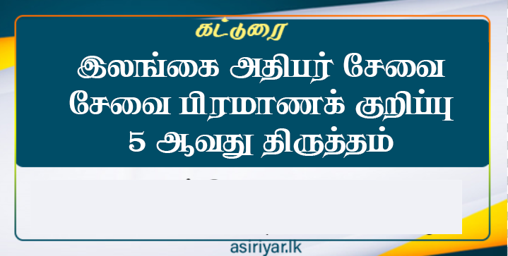 இலங்கை அதிபர் சேவையின் சேவைப் பிரமாணக் குறிப்பில் பல முக்கியத்துவம் வாய்ந்த திருத்தங்களை உள்ளடக்கிய அதிவிசேட வர்த்தமானி அறிவித்தல் (2454/54) 2025ஆம் ஆண்டு செப்டம்பர் 18ஆம் திகதி வெளியிடப்பட்டுள்ளது. இந்த ஐந்தாவது திருத்தம், அதிபர் சேவைக்கான ஆட்சேர்ப்பு முறை, பதவி உயர்வுக்கான தகைமைகள், இடமாற்றக் கொள்கை மற்றும் திறன் விருத்தி ஆகியவற்றில் குறிப்பிடத்தக்க மாற்றங்களை அறிமுகப்படுத்தியுள்ளது.
