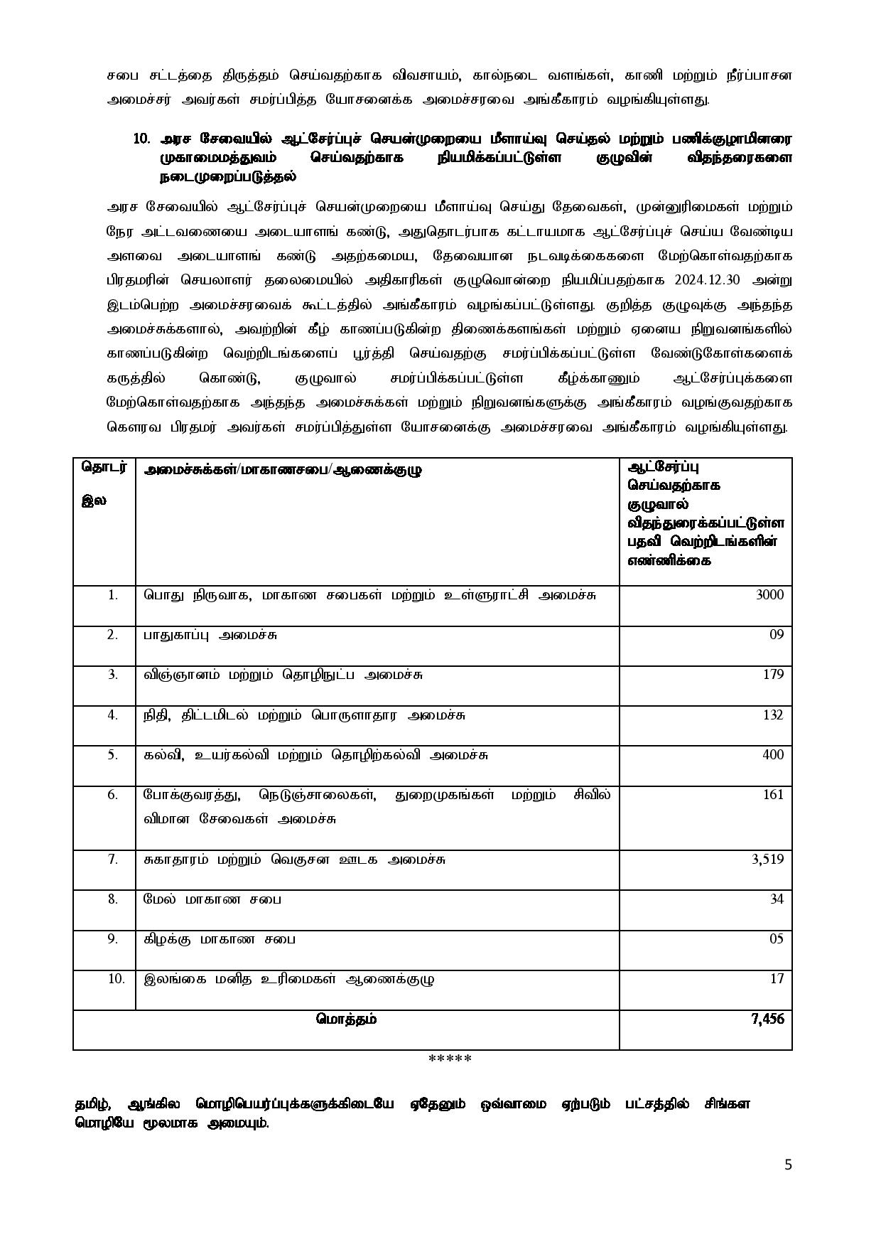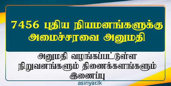 7456 புதிய நியமனங்களுக்கு அமைச்சரவை அனுமதி வழங்கியுள்ளது. அரச நிறுவனங்கள் திணைக்களங்களில் நிலவுகின்ற வெற்றிடங்களை நிரப்புவதற்காக பிரமர் கலாநிதி ஹரினி அமரசூரிய முன்வைத்த அமைச்சரவைப் பத்திரத்திற்கு இன்று அனுமதி வழங்கப்பட்டுள்ளது.