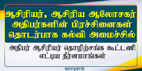 ஆசிரியர் தொழில்சங்கங்கள் கல்வி அமைச்சருடன் நடாத்திய கலந்துரையாடலின் தீர்மானங்கள்