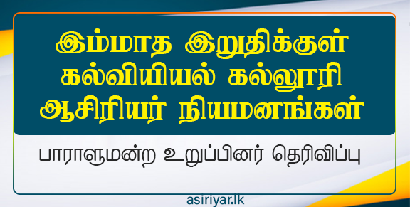 கல்வியியல் கல்லூரி ஆசிரியர்களுக்கான நியமனங்கள் இம்மாத இறுதிக்குள் வழங்கப்பட உள்ளதாக பாராளுமன்ற உறுப்பினர் றஜீவன் ஜெயச்சந்திரமூர்த்தி தெரிவித்துள்ளார்.