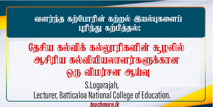 வளர்ந்த கற்போரின் கற்றல் இயல்புகளைப் புரிந்து கற்பித்தல்: தேசிய கல்விக் கல்லூரிகளின் சூழலில் ஆசிரிய கல்வியியலாளர்களுக்கான ஒரு சுய விமர்சன ஆய்வு