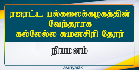இலங்கை ரஜரட்ட பல்கலைக்கழகத்தின் வேந்தராக கல்லேல்லே சுமனசிறி தேரர் நியமிக்கப்பட்டுள்ளார். ஜனாதிபதி அநுரகுமார திசாநாயக்க இந்த நியமனத்தை வழங்கியுள்ளார்.