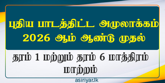 தரம் 1 மற்றும் தரம் 6 ஆகியவற்றுக்கு மாத்திரம் 2026 ஆம் ஆண்டு முதல் புதிய கல்வித் திட்டத்தின் கீழ் புதிய பாடத்திட்டத்தை அமுல்படுத்துவற்கு கல்வி அமைச்சு தீர்மானித்துள்ளதாக தெரிவிக்கப்பட்டுள்ளது.