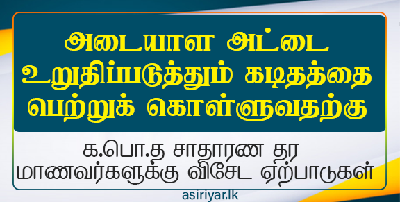 தேசிய அடையாள அட்டையின் (NIC) விவரங்களை உறுதிப்படுத்தும் கடிதங்களைப் பற்றிய விசேட அறிவித்தல் ஒன்றை ஆட்களை பதிவு செய்யும் திணைக்களம் வெளியிட்டுள்ளது. இது 2025 மார்ச் 17 முதல் ஆரம்பமாகும் க.பொ.த சாதாரண தரப் பரீட்சை (GCE O/L) எழுதும் மாணவர்களுக்கானதாகும்.