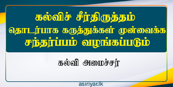 கல்விச் சீர்திருத்தத்திற்கான கருத்துக்கள் மற்றும் ஆலோசனைகளை சமர்ப்பிக்க வாய்ப்பு