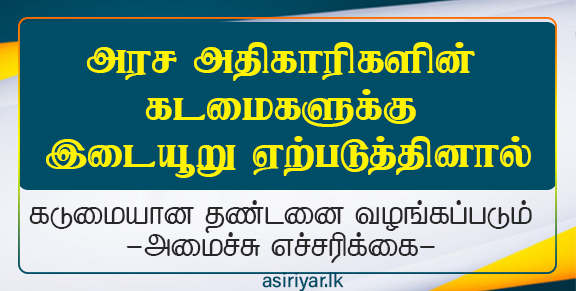அரச அதிகாரிகளுக்கு இடையூறு ஏற்படுத்தினால் கடுமையான தண்டனை