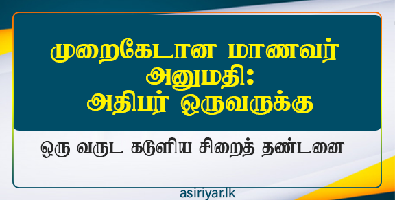 2015 ஆம் ஆண்டு கம்பஹா பிரதான பாடசாலை ஒன்றில் தரம் 5 க்கு மாணவர் ஒருவரை அனுமதிப்பதில் முறைகேடாக நடந்த கொண்ட அதிபர் ஒருவருக்கு நீதிமன்றினால் 3 வருட கடூழிய சிறைத்தண்டனை விதிக்கப்பட்டுள்ளது.