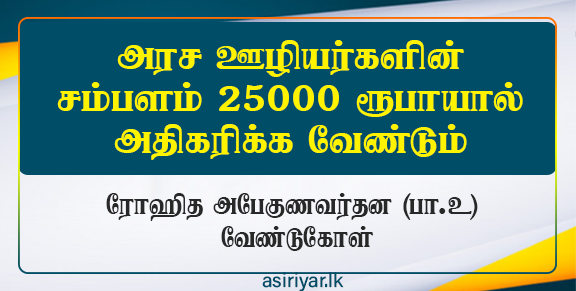 இந்த ஆண்டுக்கான வரவு செலவுத் திட்டத்தில் அரச ஊழியர்களின் சம்பளம் 25,000 ரூபாவால் அதிகரிக்கப்பட வேண்டுமென நாடாளுமன்ற உறுப்பினர் ரோஹித அபேகுணவர்தன தெரிவித்துள்ளார்.